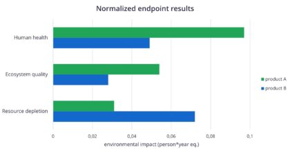 If we go back to the case of illustrating the environmental benefits of a new design to your high-level manager, it is probably a good idea to present your results at the endpoint level. Interpretation of these results doesn’t require extensive knowledge of environmental effects, and there are only three impact categories to consider. As a result, your manager will be able to take the information in quickly and apply it to the context of making decisions.